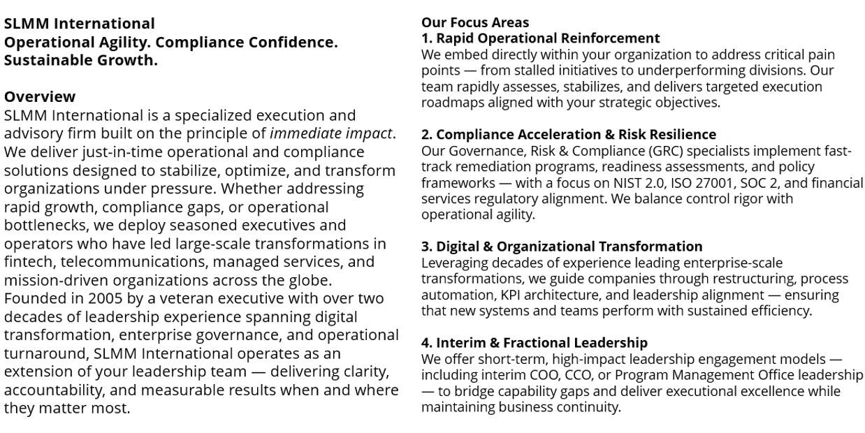 SLMM Consulting Portfolio of Services